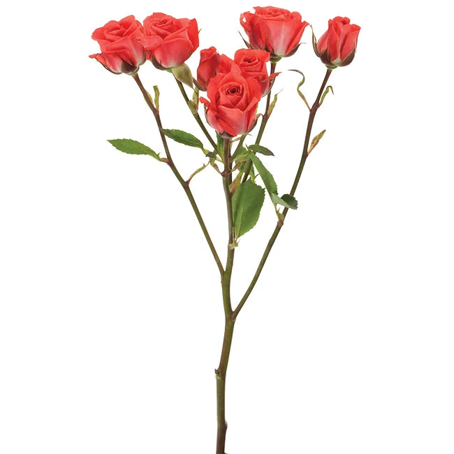The Corcega is a spray rose admired for its soft orange tone and relaxed bloom clusters. Its branching stems produce gentle layers of flowers that open gradually, offering a calm yet warm presence. This spray rose adds balance and subtle color to refined designs.