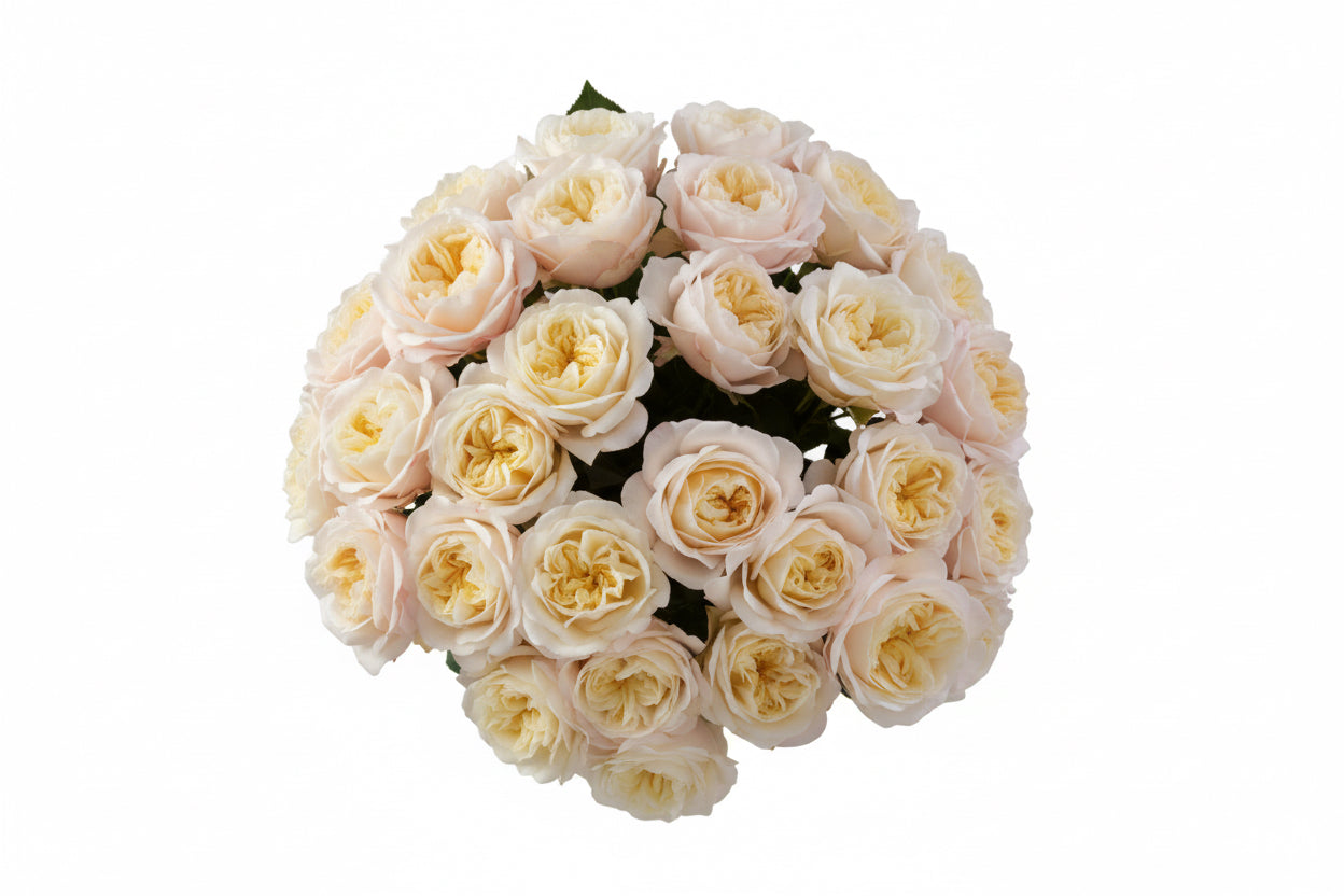 The Fatima Garden's is a garden rose valued for its generous bloom and gentle peach-cream palette. Its open form reveals layered petals that create a lush, romantic silhouette. This garden rose adds warmth and softness to elevated floral designs.