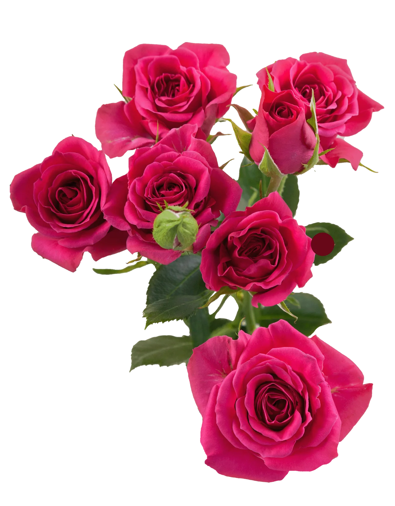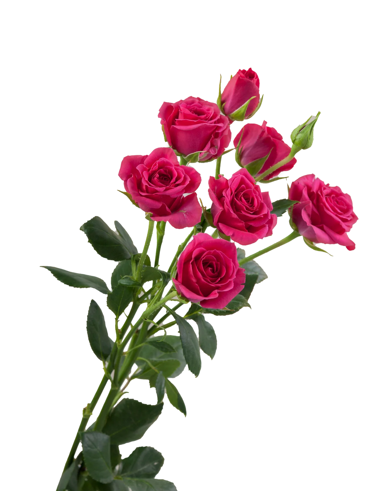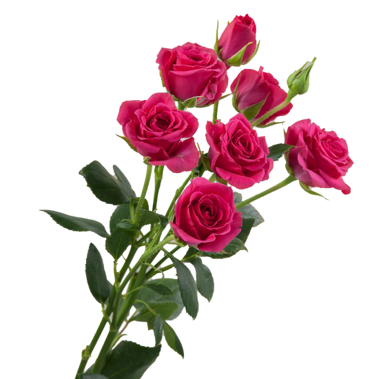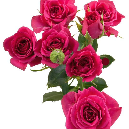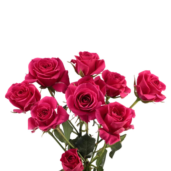 The Gem Star is a spray rose defined by its vivid hot pink blooms and energetic presence. Multiple small flowers open along each stem, creating visual rhythm and bold texture. This spray rose brings excitement and personality to modern arrangements.
