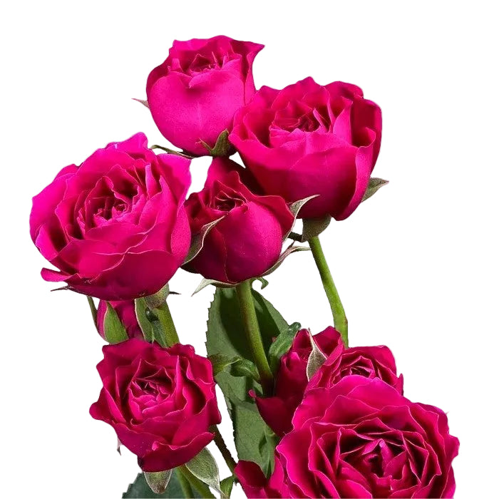 The Hot Majolika is a spray rose known for its intense pink coloration and expressive bloom clusters. Each stem opens with multiple blossoms, producing a lively and textured look. This spray rose delivers confidence and color-driven impact.