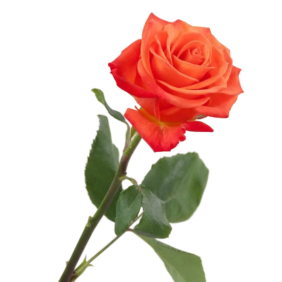 The Orange Crush is a rose defined by its intense orange color and energetic bloom shape. Its petals open with force, creating a lively and expressive silhouette. This variety brings instant excitement to floral designs.