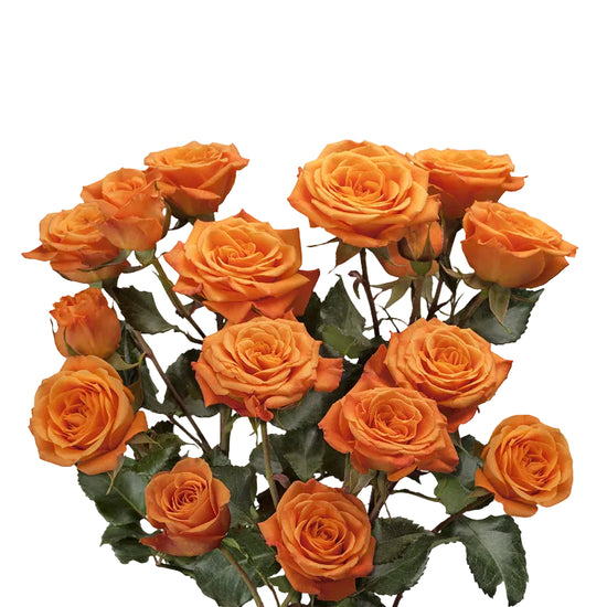 The Orange Sensation is a spray rose known for its strong orange coloration and clustered bloom habit. Multiple blossoms open per stem, creating a confident and vibrant texture. This spray rose delivers unmistakable color impact in modern arrangements.