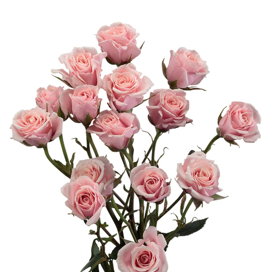 Pink Majolika is a spray rose celebrated for its light pink blooms and airy, multi-flower branching. Several petite roses open along each stem, creating a delicate, fluttery texture that fills gaps and softens edges in arrangements. This spray rose brings a gentle, romantic pink that feels fresh and weightless, especially in pastel palettes.