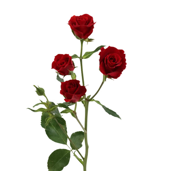 The Red Mikado is a spray rose defined by its deep red blooms and strong branching structure. Multiple flowers open per stem, creating bold texture and visual weight. This spray rose delivers classic drama with layered intensity.