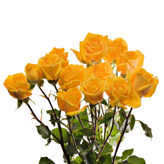 The Somerset is a spray rose admired for its soft yellow blooms and balanced branching. Multiple flowers open evenly along each stem, creating gentle texture and harmony. This spray rose brings warmth without overpowering.